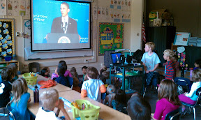Additionally we went to Mrs. Lamb's classroom to view President Barack Obama's Back to School Speech given in Philadelphia, Pennsylvania. There was some advanced language in the speech, but the children enjoyed the enthusiasm of the students who were able to see the President live. After the speech we discussed the importance of always doing your best in school!